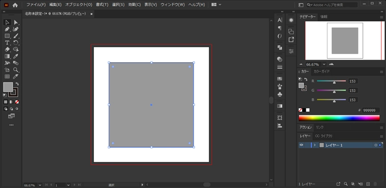 キャンバスの図形のグラデーションもモノクロからのままです。
