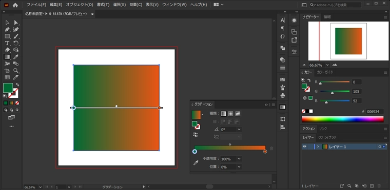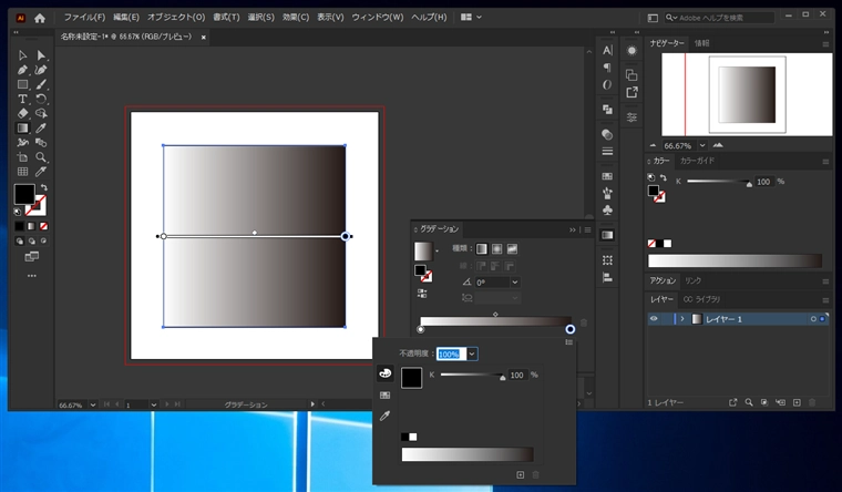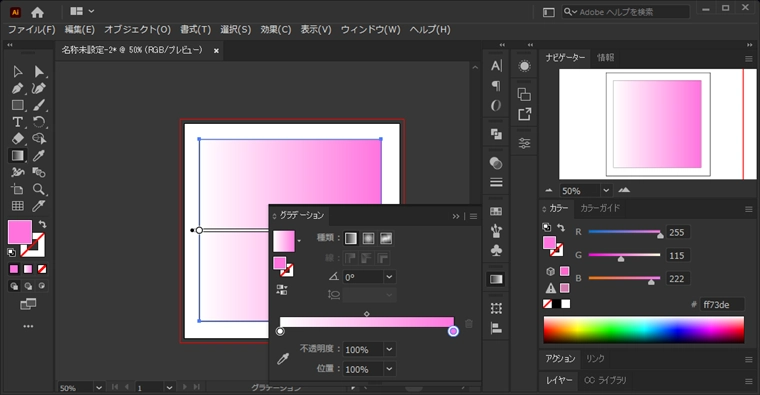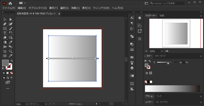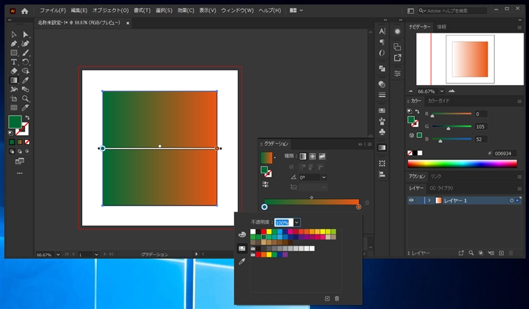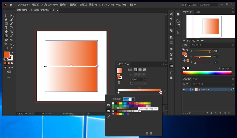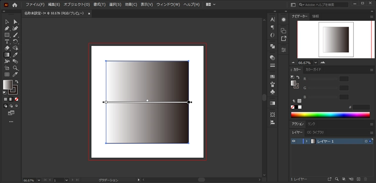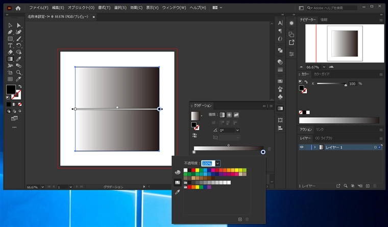 グラデーションが適用されます。グラデーションのカラーを変更します。グラデーションウィンドウを表示します。