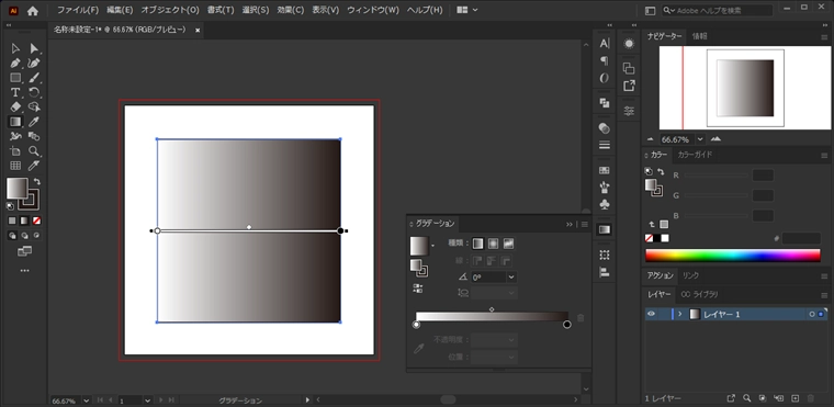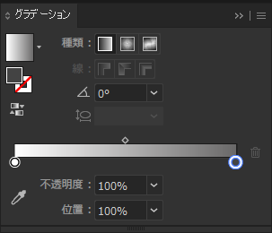 画面に表示されていない場合は[ウィンドウ]メニューの[グラデーション]の項目をクリックすると表示できます。