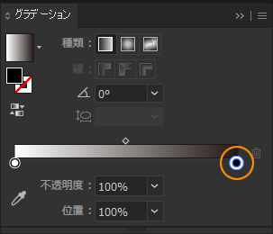 グラデーションのカラーの項目(下図のオレンジ丸部分)をクリックして選択します。